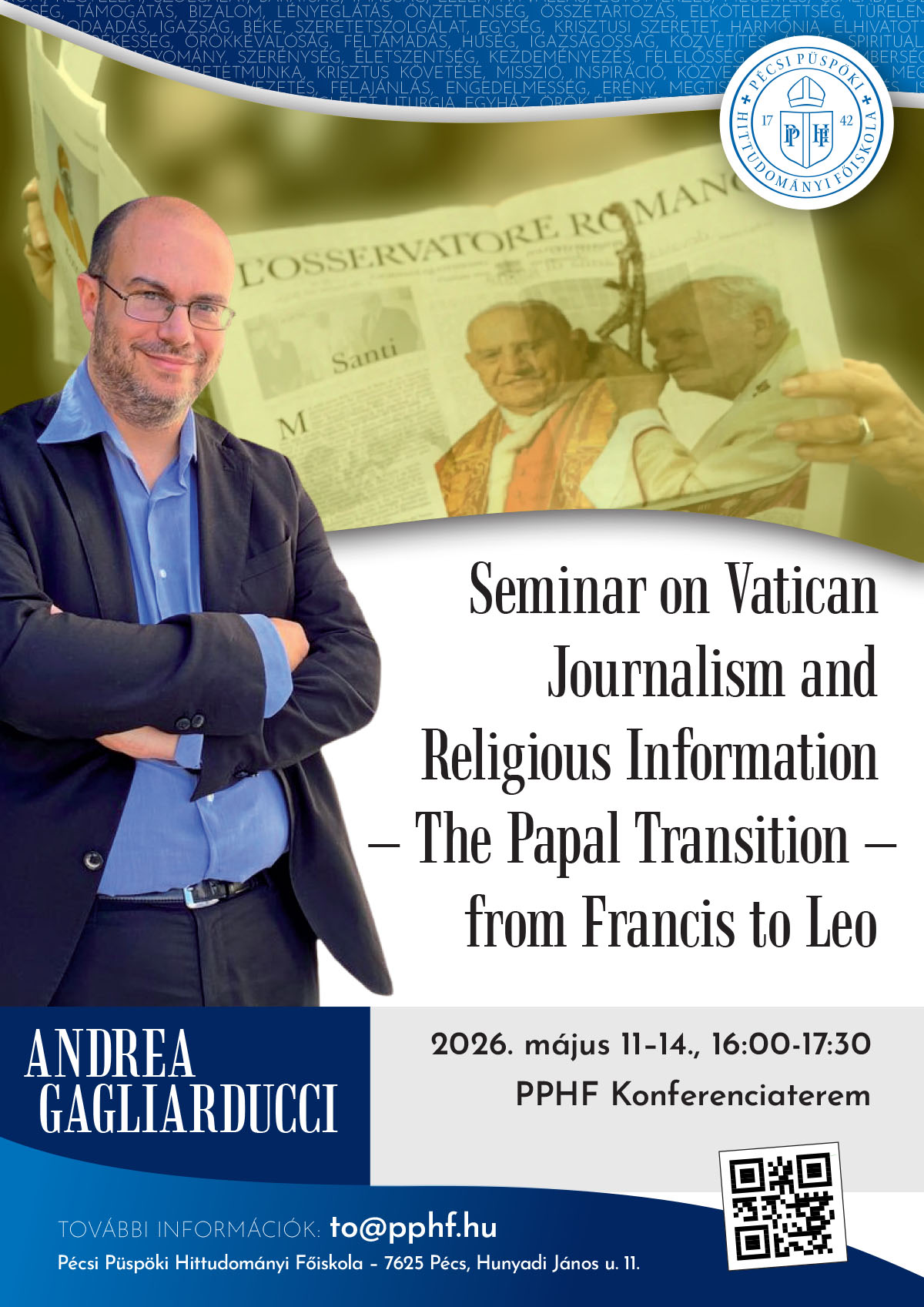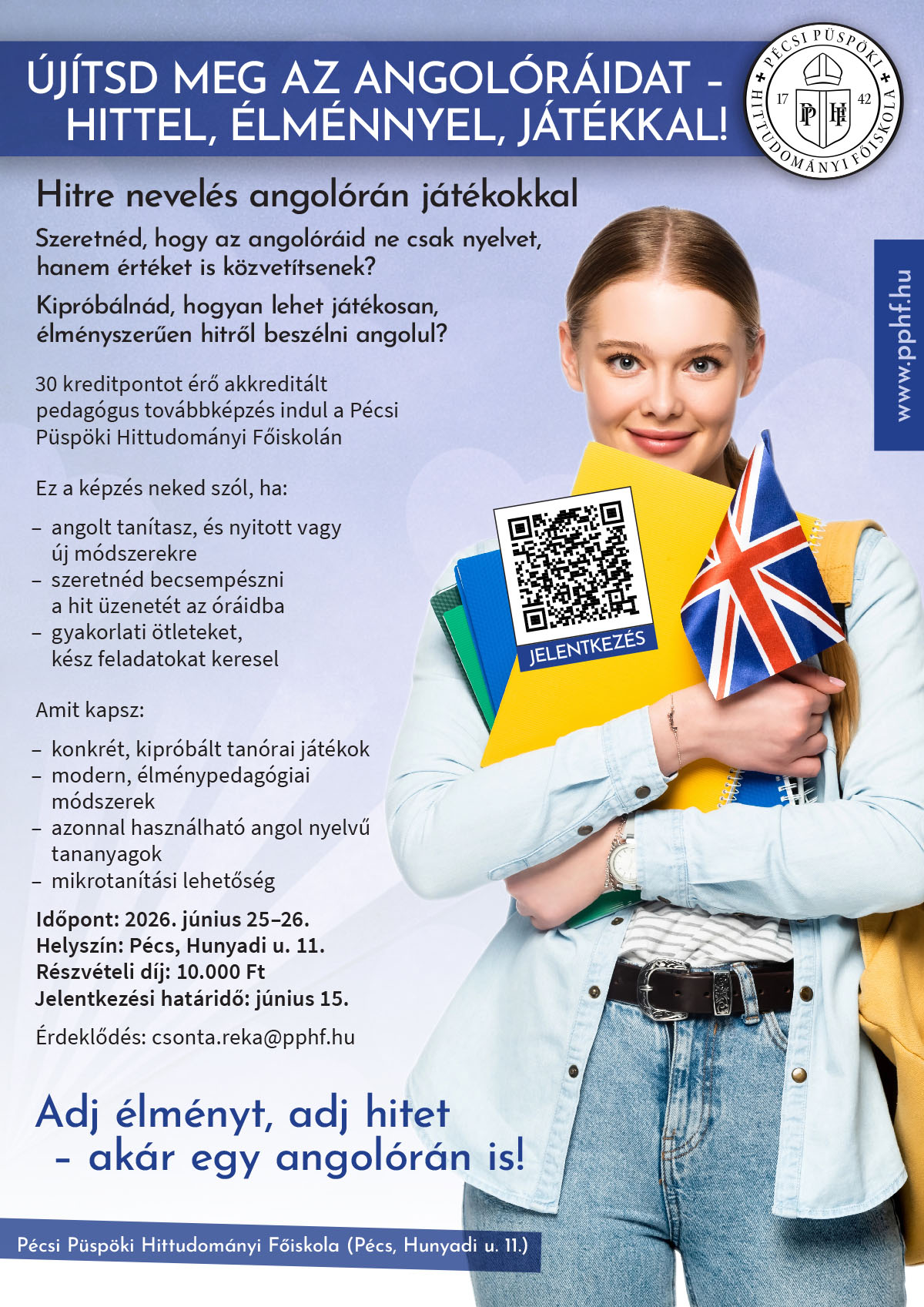 A Pécsi Püspöki Hittudományi Főiskola továbbképzést indít pedagógusok számára 2026. június 25-26-án.