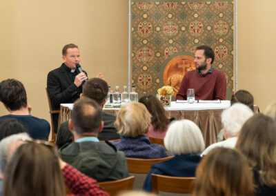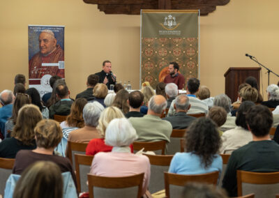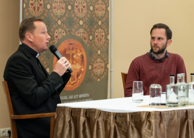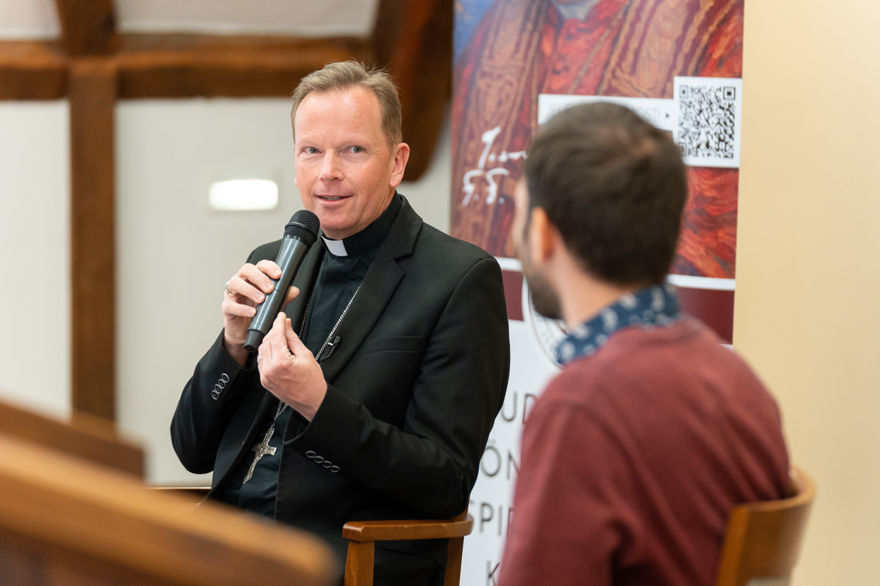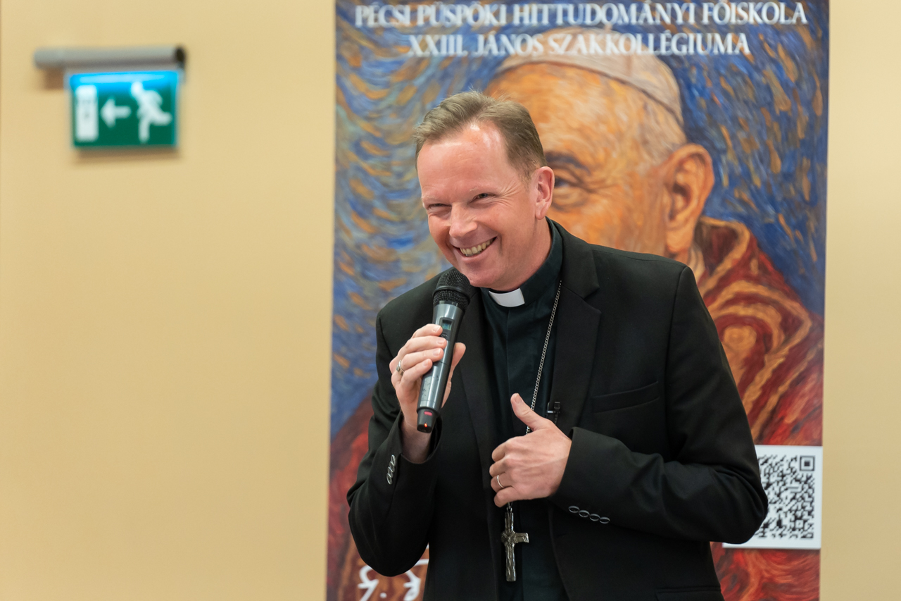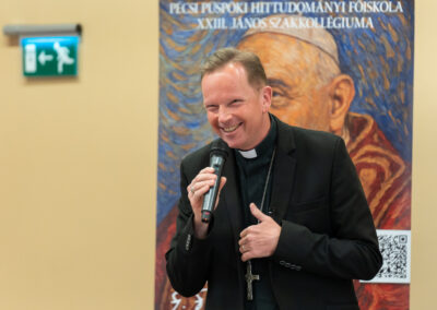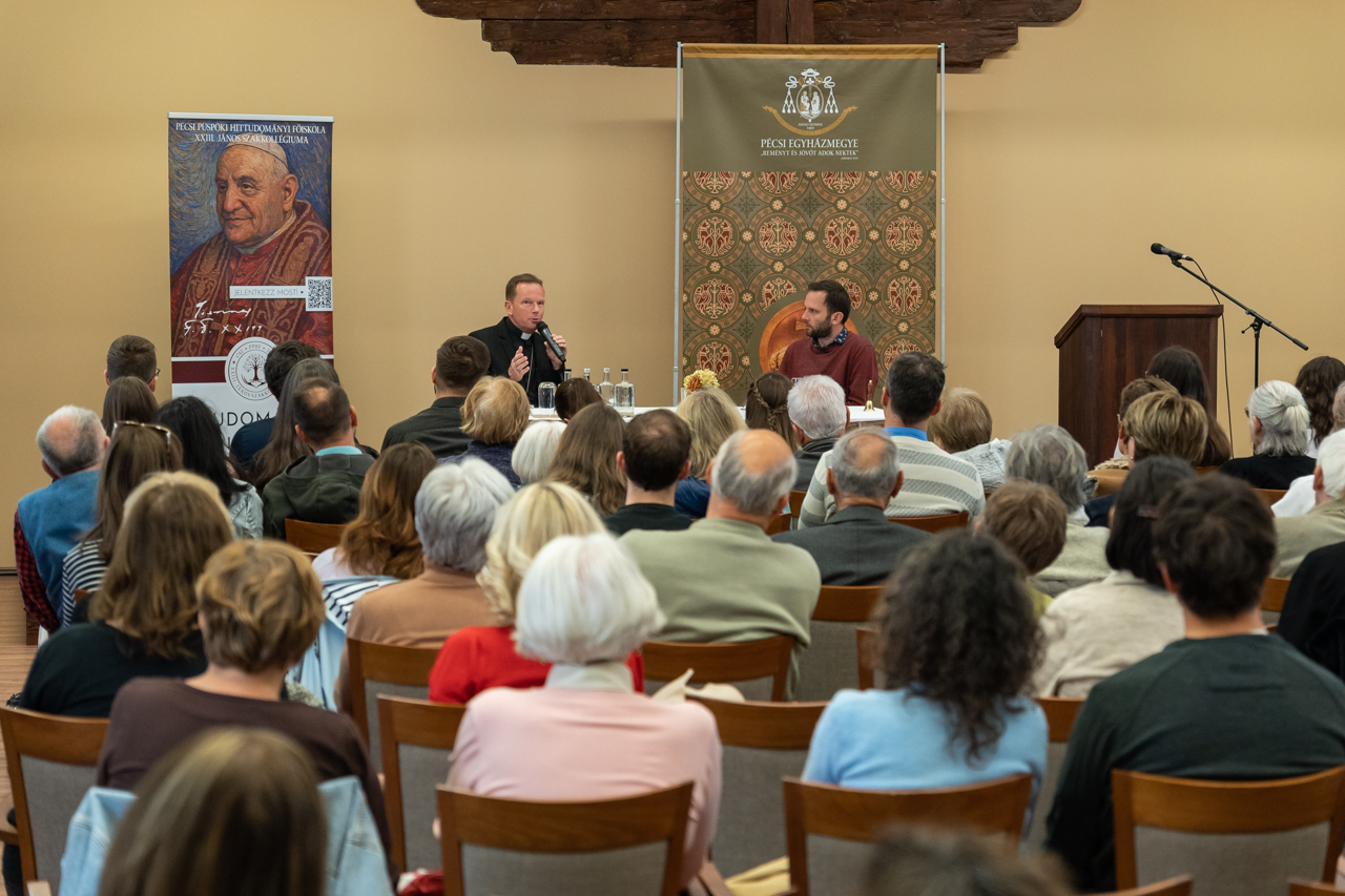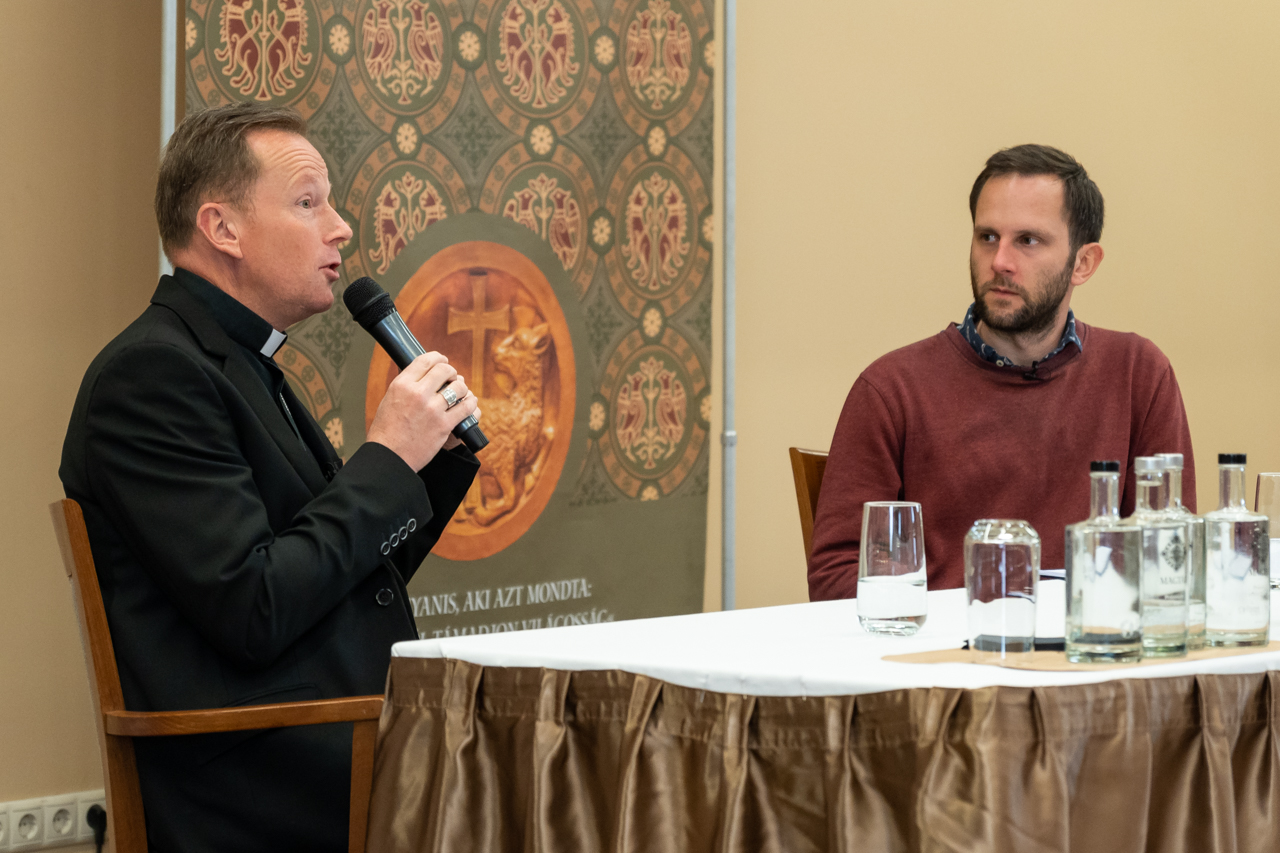 Április 20-án este kisebb tömeg gyűlt össze a Magtár Látogatóközpont emeleti termében, a XXIII. János Szakkollégium “Horizontok” beszélgetéssorozatának évadzáró alkalmára. Meghívott vendégünk ezúttal nem más volt, mint Fábry Kornél budapest-esztergomi segédpüspök, akivel a körülbelül másfél órás, közvetlen hangvételű beszélgetésben azt a kérdést jártuk körbe, hogy hogyan érdemes olvasnunk a Szentírást.