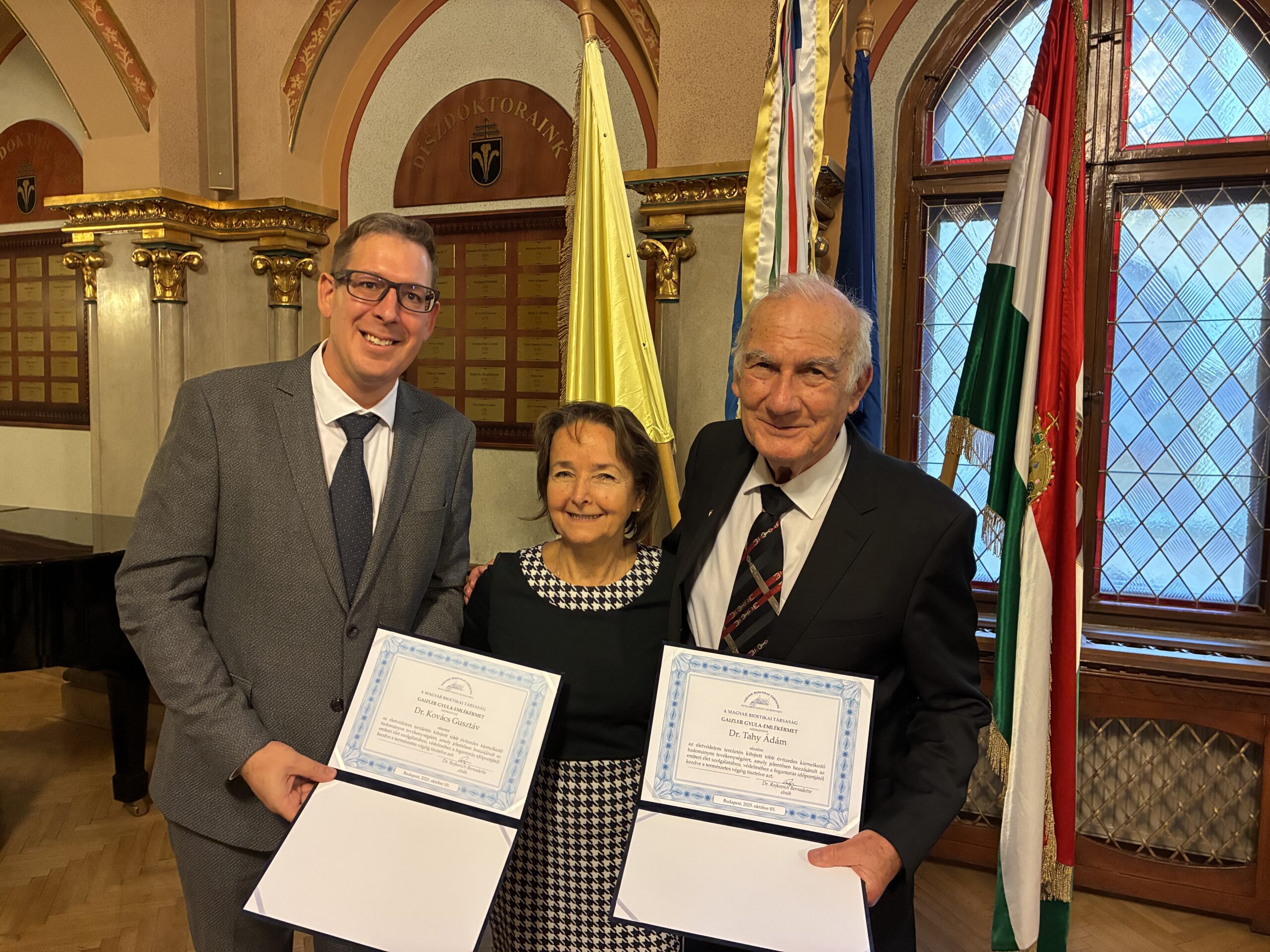 A Magyar Bioetikai Társaság elnöksége 2025-ben Tahy Ádám kardiológus főorvosnak, a budapesti Szent Ferenc Kórház korábbi igazgatójának és Kovács Gusztáv egyetemi tanárnak, főiskolánk és a Pécsi Tudományegyetem Általános Orvostudományi Kara oktatójának ítélte a Gaizler Gyula-emlékérmet.